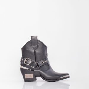 El precio original era: $ 330.000.$ 198.000El precio actual es: $ 198.000.Botineta texana de cuero vacuno color negro, con forro interno de cuero ecológico. Fondo de suela color natural con vira negra. Taco de 7 cm de alto.