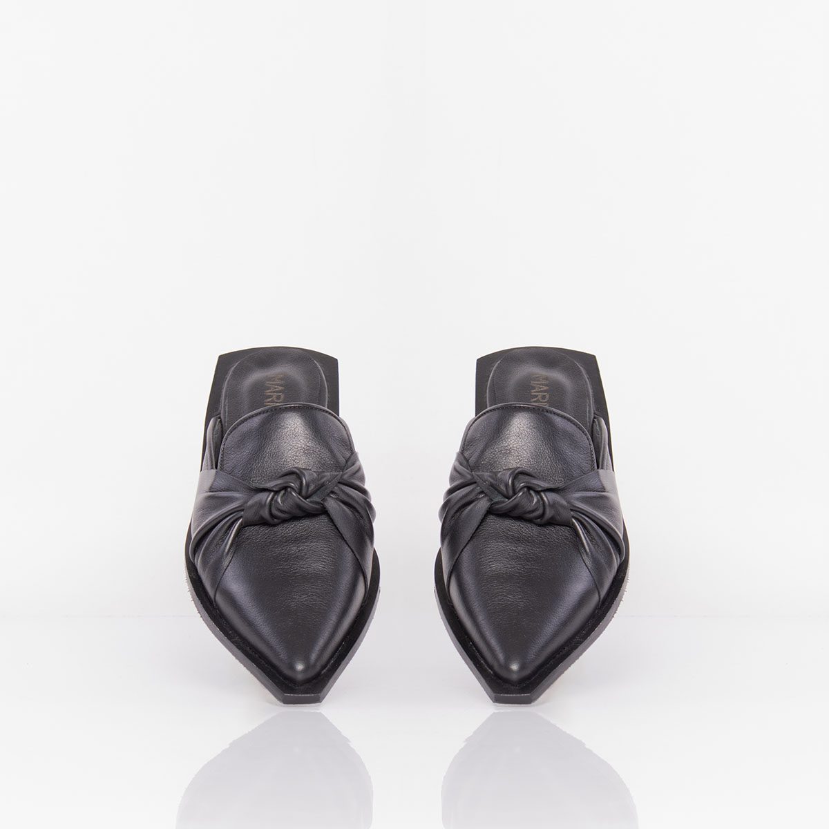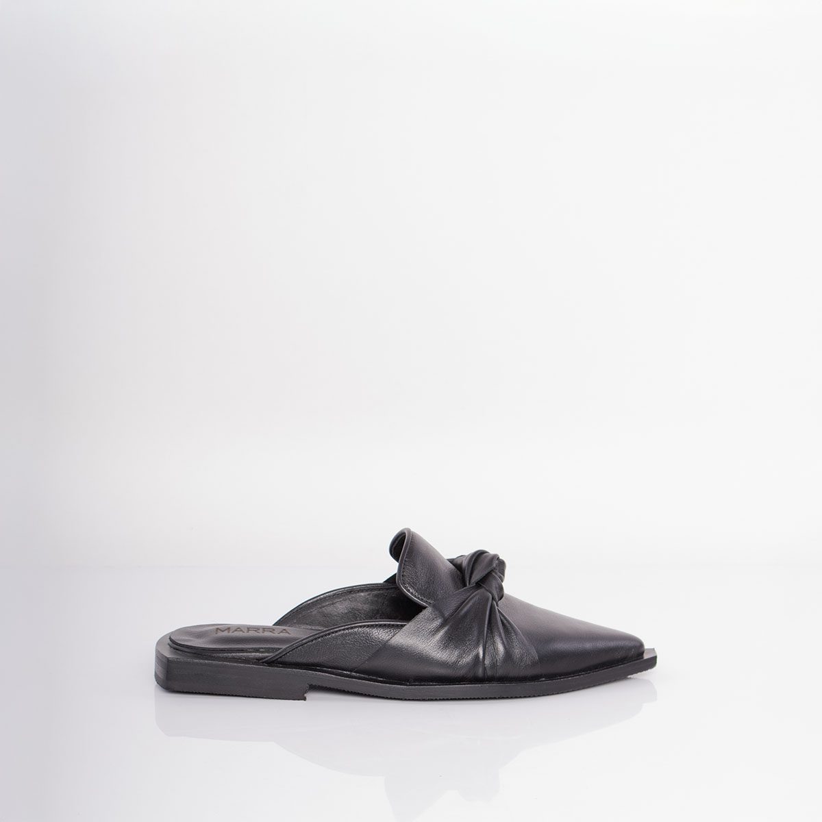 Mule LOBI Black – Cuero vacuno con detalle de nudo. Suela de goma antideslizante. Diseño artesanal MARRA.