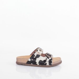 El Mule LOBI Black reinterpreta el clásico calzado plano con un diseño moderno y femenino. Confeccionado íntegramente en cuero vacuno, destaca por su detalle de nudo frontal, que aporta textura y sofisticación sin perder sencillez.